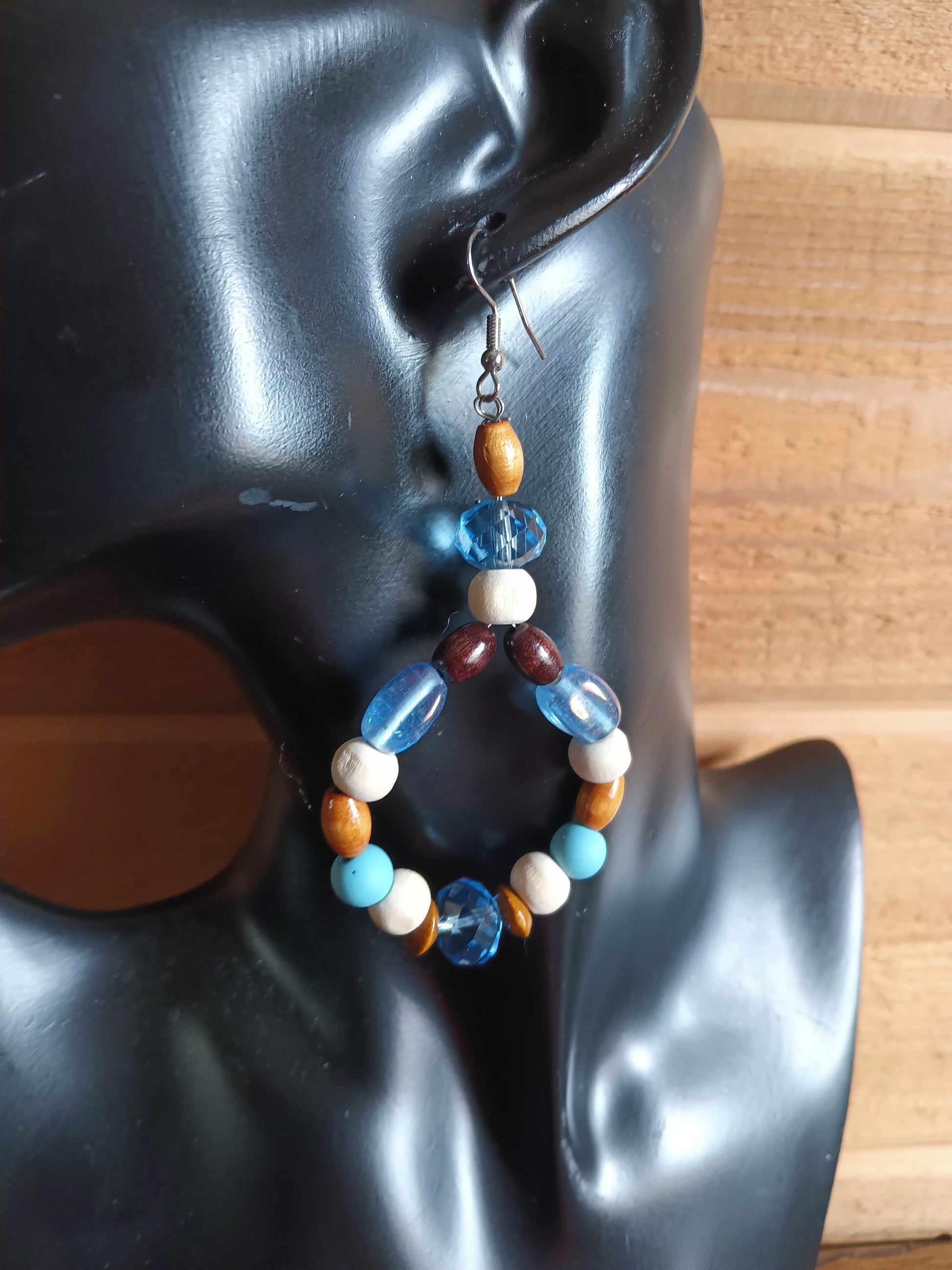 3' long uniquely beaded, lightweight hoop earrings