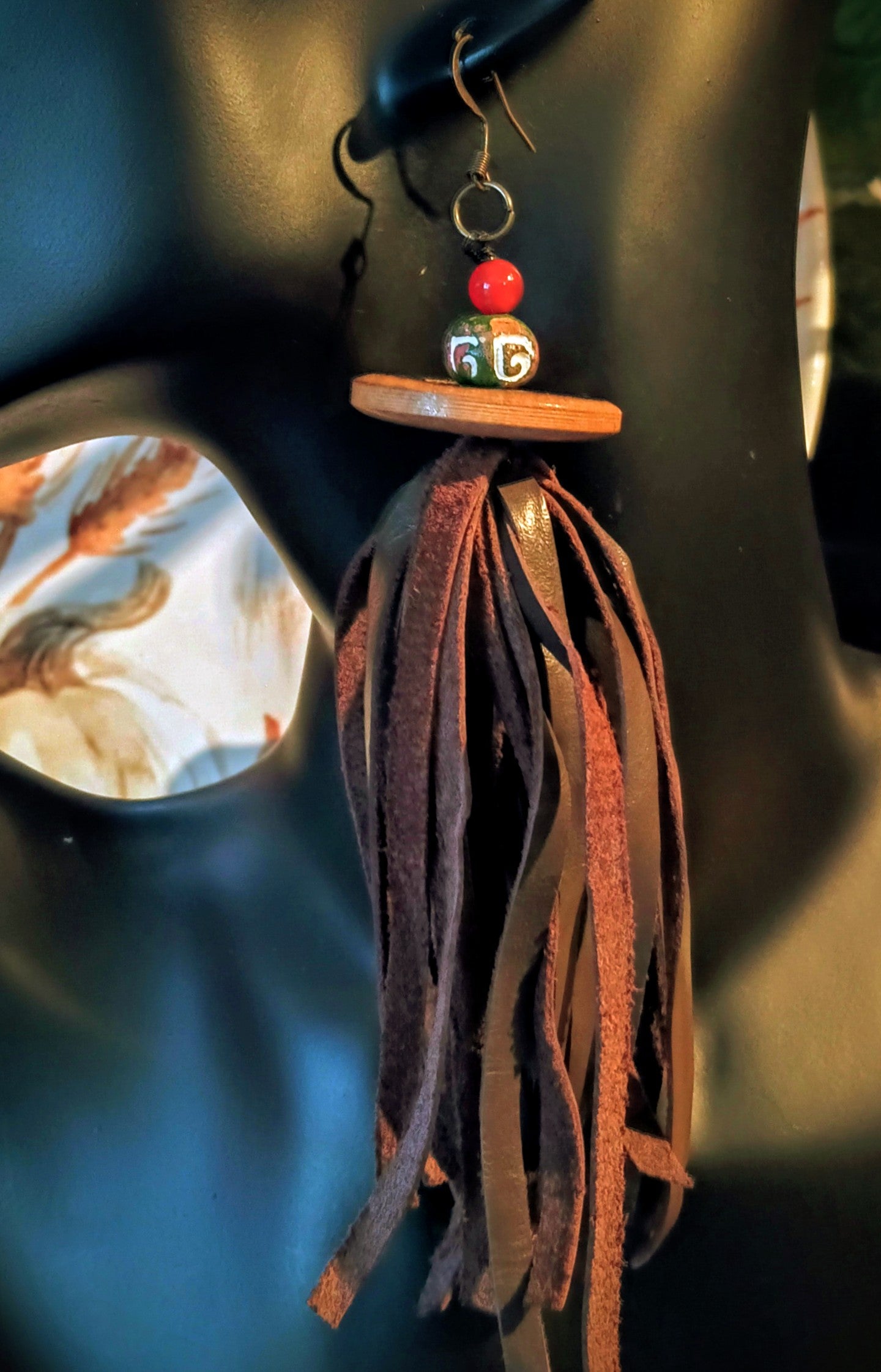 Hand-cut leather fringe, rich fall tones, and artisan beads — these statement 6" earrings were made to turn heads. Light, dramatic, and handcrafted with love, they bring movement, style, and soul to every outfit.